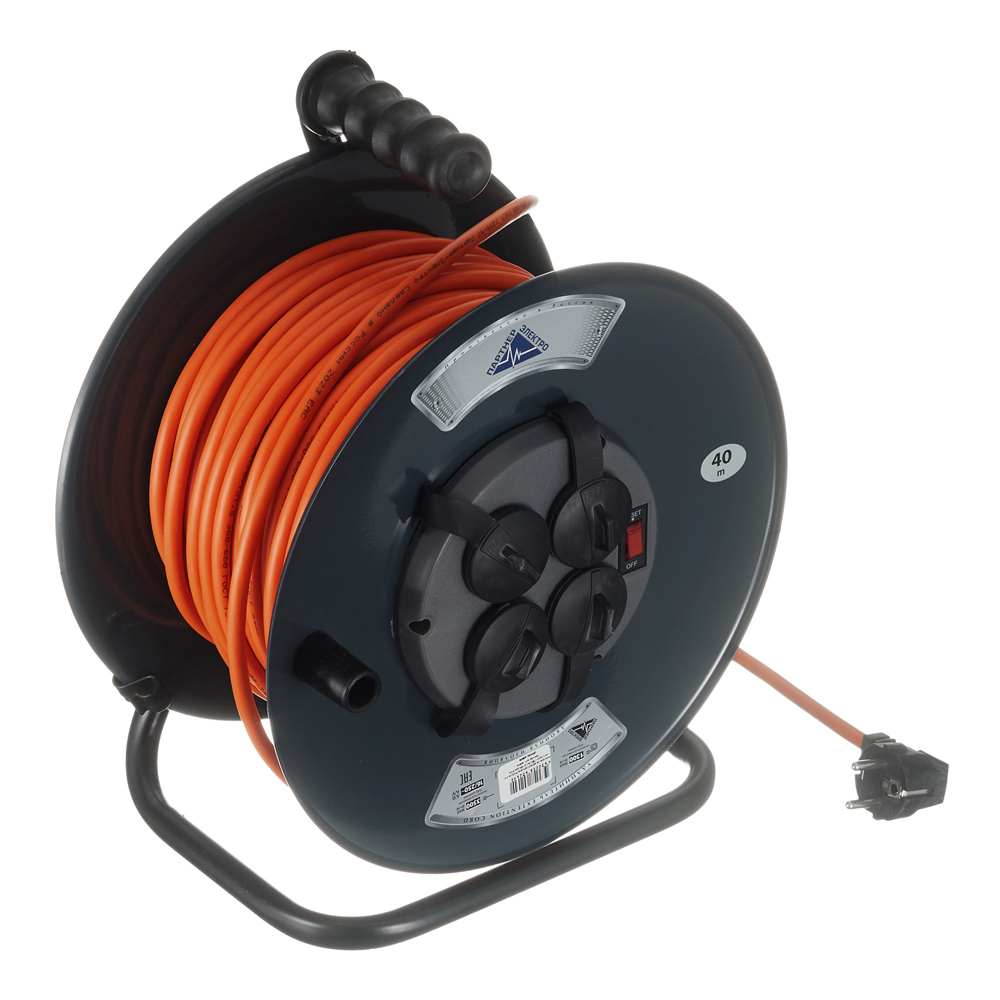 Удлинитель Партнер Электро с заземлением 40 м на катушке металл 3,5 кВт 4 розетки ПВС 3х1,5 кв.мм IP44