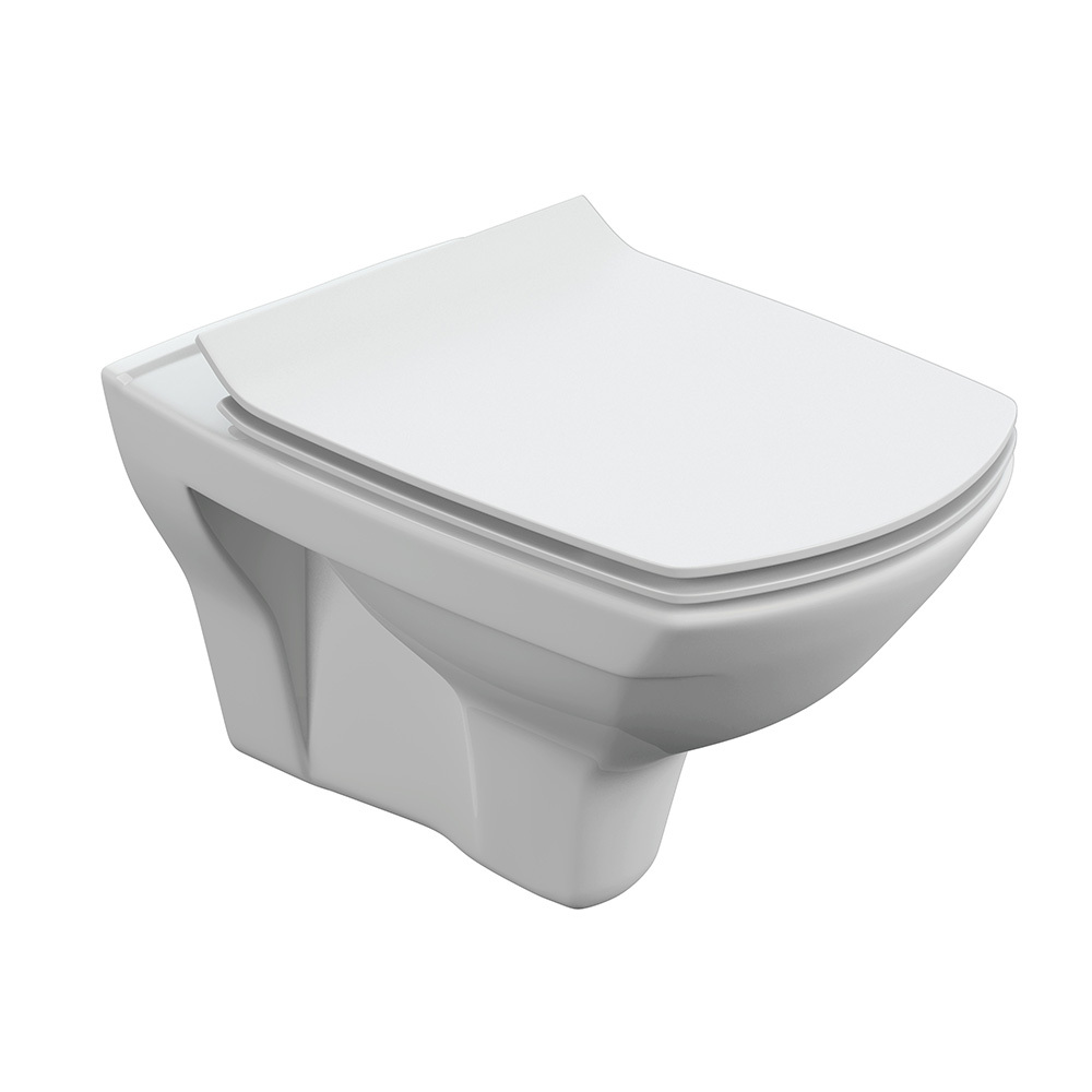 В комплектацию входит: Унитаз настенный керамический безободковый; сиденье для унитаза из дюропласта ультратонкое легкосъемное с функцией плавного закрывания; инструкция/гарантийный талон