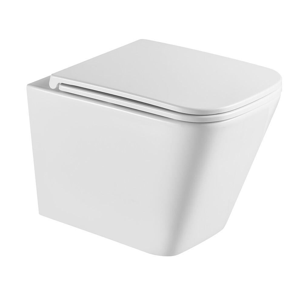 Подвесной унитаз серии TX Tornado скошенной квадратной формы с прямыми линиями.