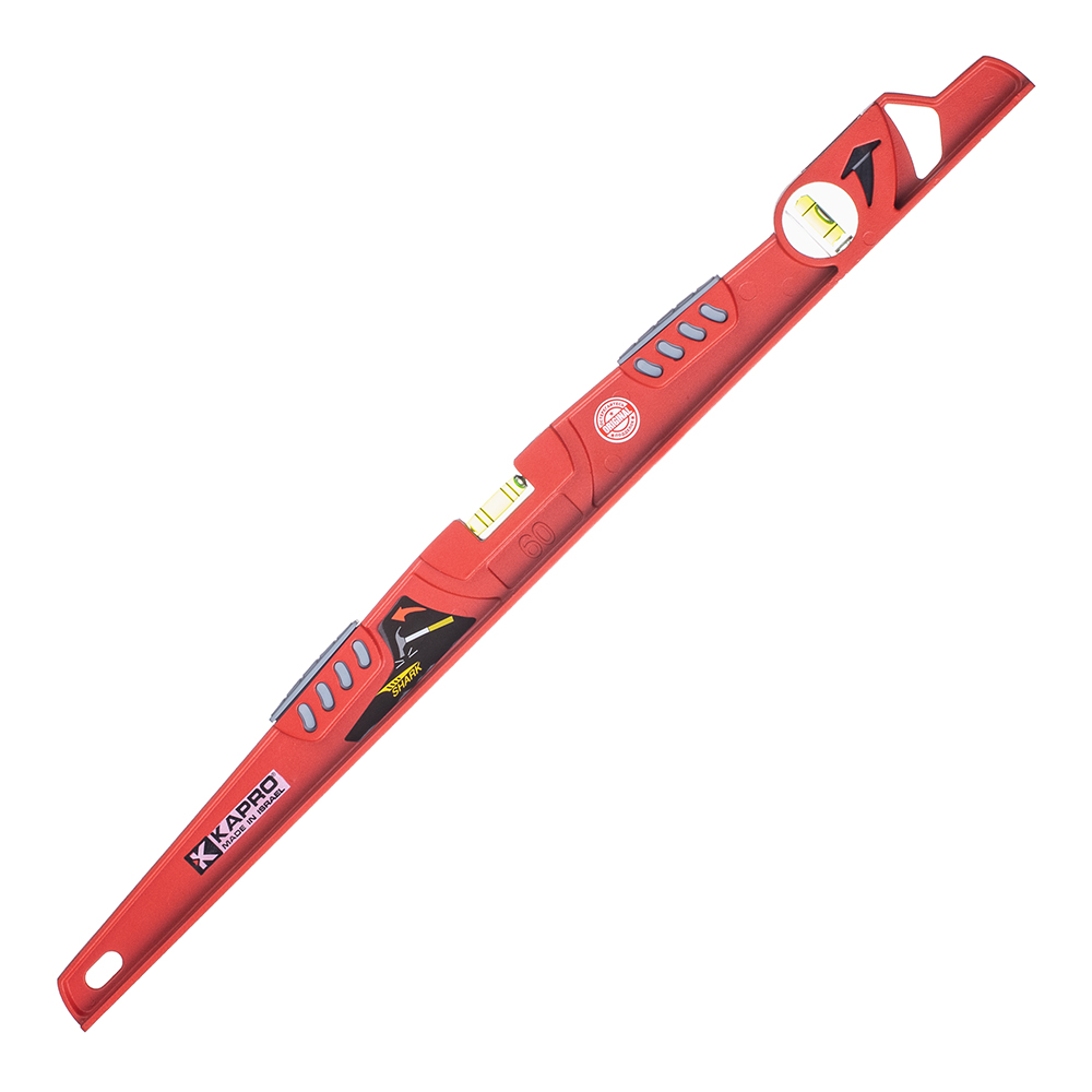 Уровни Kapro серии Shark идеально подходят для укладки плитки, проверки и определения отклонений поверхностей и различных конструкций от горизонтали или вертикали. Используется для строительных и отделочных работ. Идеальный вес и прочность обеспечены литым алюминиевым корпусом с фрезерованной рабочей поверхностью. Также в данной серии уровней применена дополнительная обработка поверхности для быстрой очистки. Точность измерений обеспечивают 2 прочные полиакриловые колбы. Материал колб устойчив к механическим воздействиям и растрескиванию при случайных падениях и ультрафиолетовым лучам. Сами колбы надежно крепятся внутри корпуса на эпоксидную смолу. В горизонтальной колбе размечены дополнительные риски, для измерения уклона в 2%. Запатентованная система Plumb Site® Dual-View™ в конструкции уровня позволяет комфортно контролировать вертикальные отклонения: вы видите колбу, глядя в смотровой паз. Амортизирующие резиновые вставки на корпусе позволяют производить коррекцию отклонений во время работы с помощью постукиваний по ним. Идеально подходит для работы по плитке и кафелю. Все уровни бренда Kapro проходят электронное тестирование колб и электронную калибровку точности.