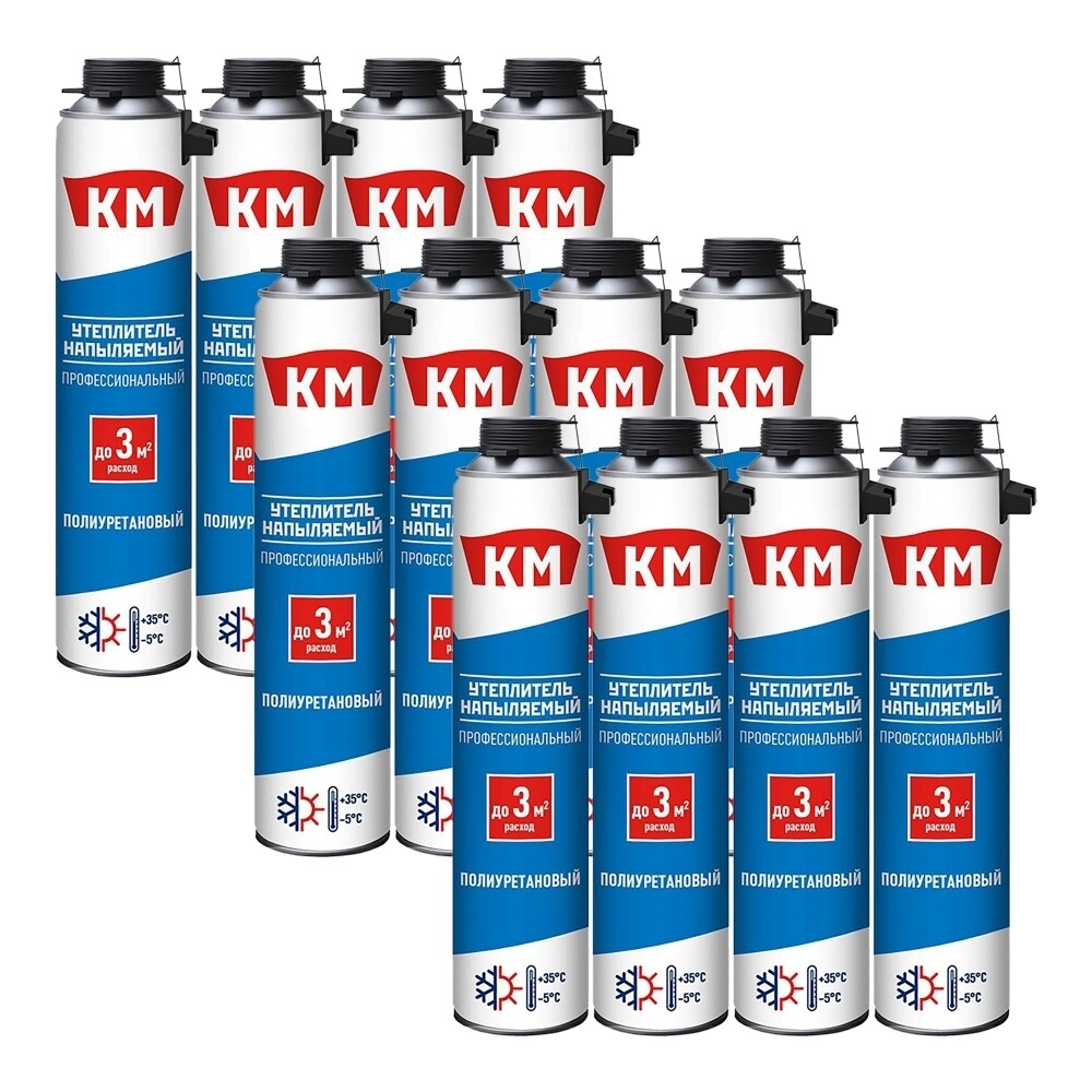 Утеплитель напыляемый полиуретановый КМ профессиональный 750 мл комплект (12 шт.)