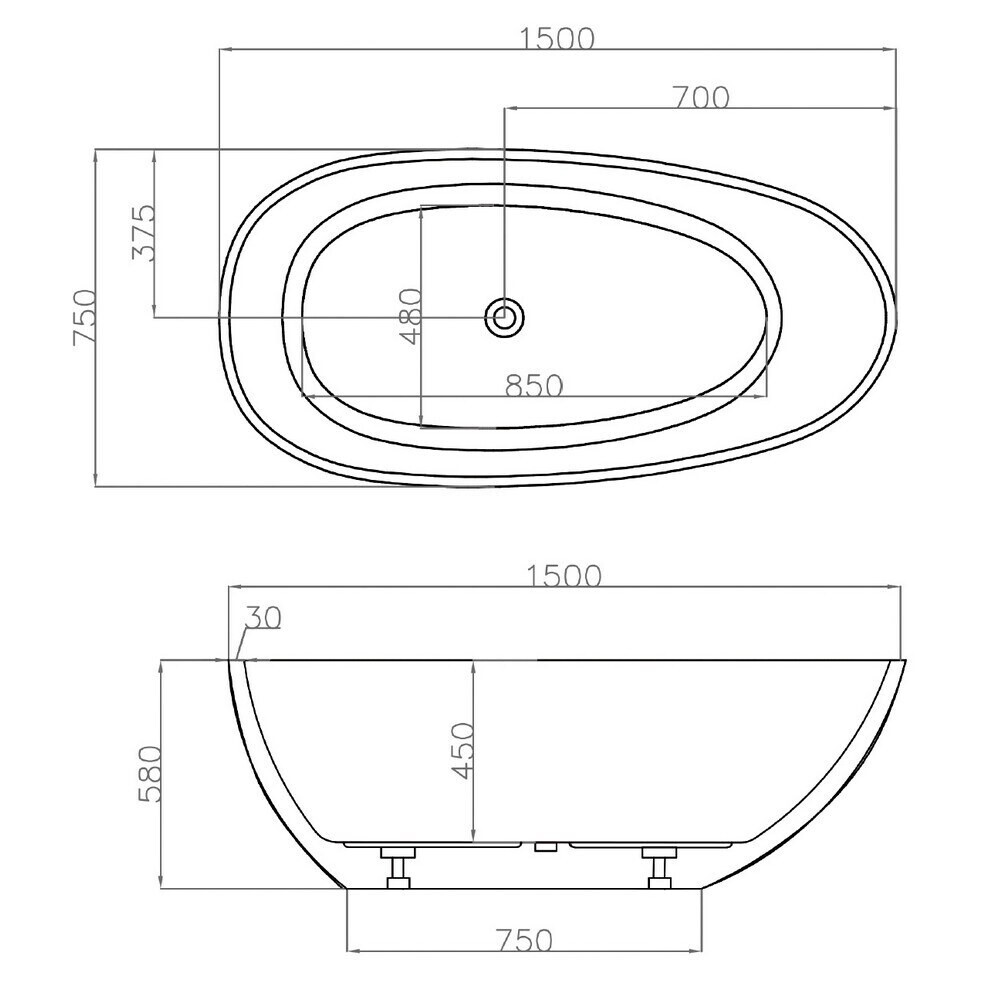 Ванна акриловая Abber 150х75 см отдельностоящая с ножками (AB9356-1.5)