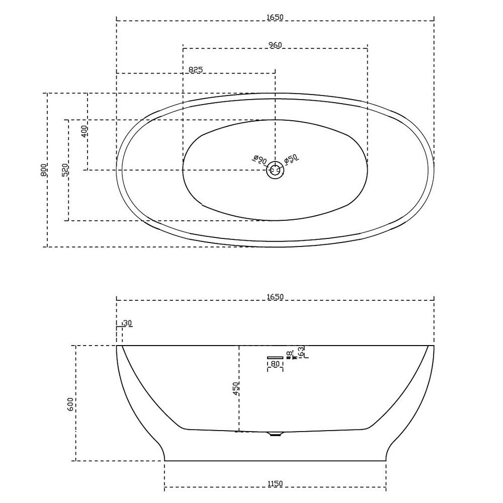 Ванна Abber, выполненная из 100% санитарного акрила, имеет овальную форму. Сливное отверстие расположено по центру. Размер ванны составляет 165х80 см, объем — 160 л. Ванна выдерживает максимальную нагрузку 450 кг.