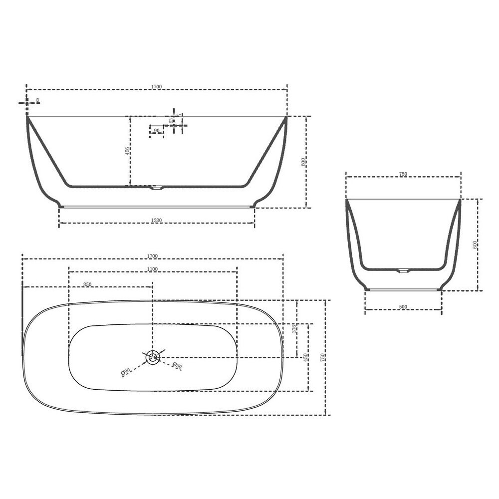 Ванна Abber, выполненная из 100% санитарного акрила, имеет овальную форму. Сливное отверстие расположено по центру. Размер ванны составляет 170х75 см, объем — 180 л. Ванна выдерживает максимальную нагрузку 450 кг.
