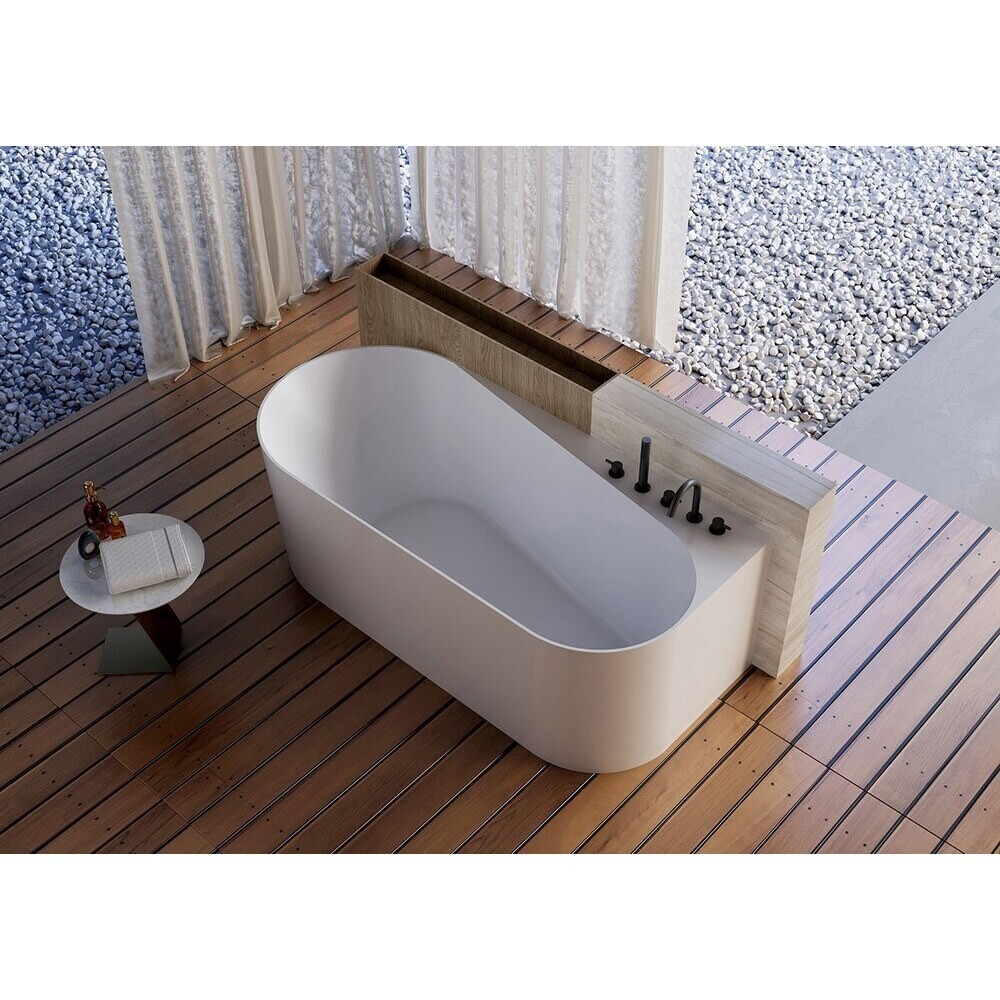 Ванна Abber, выполненная из 100% санитарного акрила, имеет ассиметричную форму. Сливное отверстие расположено сбоку. Размер ванны составляет 170х78 см, объем — 240 л. Ванна выдерживает максимальную нагрузку 450 кг.