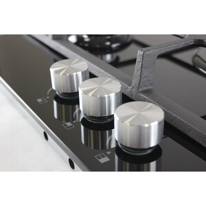 Газовая варочная панель шириной 400 мм изготовлена из закаленного стекла лаконичного черного цвета и снабжена чугунными решетками. В модели используется механическое управление. Панель оснащена 3 конфорками, одна из которых Wok с тройным рядом пламени для приготовления блюд азиатской кухни. Варочная панель также имеет конфорку быстрого нагрева, электроподжиг и газ-контроль, прекращающий подачу газа, когда пламя случайно гаснет. Подходит для магистрального и баллонного газа.