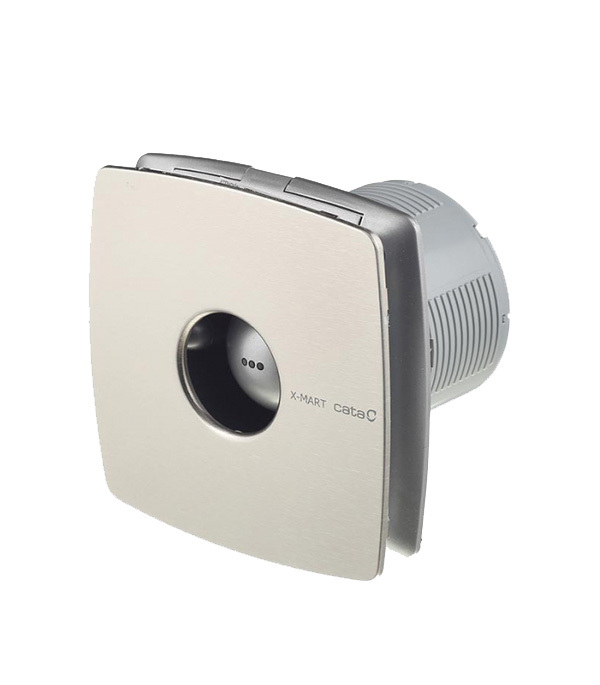 Бытовой вытяжной вентилятор серии X-MART. Наиболее распространенная серия из модельного ряда Cata. Передняя панелька снимается без винтов (отвертки) для более простой очистки, простая система установки, аэродинамическая (обтекаемая) форма для улучшения потока воздуха. Оборудован таймером задержки отключения от 3 до 30 мин и датчиком влажности. Для подключения и корректного пользования функциями вытяжного вентилятора с таймером необходимо подвести к месту установки и подключить к клеммам вентилятора три провода (сетевая фаза – к контакту L , 0 – к контакту N и управляющая фаза, которая приходит от выключателя света в помещении при его замыкании — к контакту SL. При таком способе подключения вентилятор будет включаться вместе с включением освещения в помещении (появляется фаза на управляющем контакте SL вентилятора), а при выключении освещения (пропадает фаза на управляющем контакте SL вентилятора) будет продолжать работать время, установленное на плате таймера. Устанавливается в вентиляционную шахту или в воздуховод соответствующего диаметра. Вентилятор используется только для настенного монтажа. Подключение к сети осуществляется через отдельный выключатель или через штатный выключатель освещения в помещении. Предназначен для постоянной или периодической вытяжной вентиляции санузлов, ванных комнат, кухонь и других бытовых помещений. Имеет двигатель с защитой от перегрева и световой индикатор работы. Устанавливается в вентиляционную шахту или в воздуховод соответствующего диаметра. Вентилятор используется только для настенного монтажа. Подключение к сети осуществляется через отдельный выключатель или через штатный выключатель освещения в помещении. Лицевая панель выполнена из нержавеющей стали. Для препятствия потоку воздуха в помещение установлен обратный клапан.