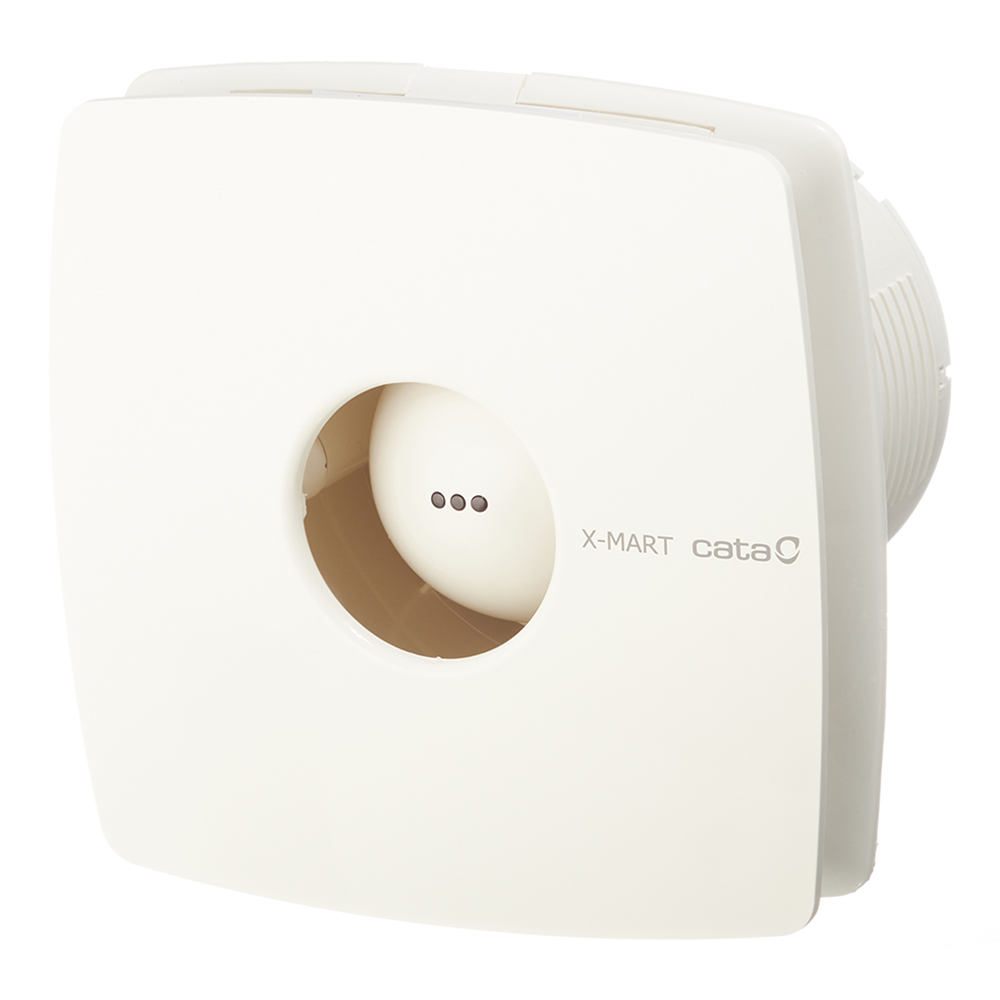 Бытовой вытяжной вентилятор серии X-Mart. Наиболее распространенная серия из модельного ряда Cata. Передняя панелька снимается без винтов (отвертки) для более простой очистки, простая система установки, аэродинамическая (обтекаемая) форма для улучшения потока воздуха. Также вентилятор оборудован таймером задержки отключения от 3 до 30 мин и датчиком влажности.