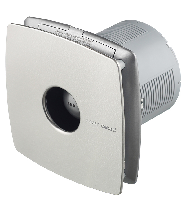 Бытовой вытяжной вентилятор серии X-MART. Наиболее распространенная серия из модельного ряда Cata. Передняя панелька снимается без винтов (отвертки) для более простой очистки, простая система установки, аэродинамическая (обтекаемая) форма для улучшения потока воздуха. Предназначен для постоянной или периодической вытяжной вентиляции санузлов, ванных комнат, кухонь и других бытовых помещений. Имеет двигатель с защитой от перегрева и световой индикатор работы. Устанавливается в вентиляционную шахту или в воздуховод соответствующего диаметра. Вентилятор используется только для настенного монтажа. Подключение к сети осуществляется через отдельный выключатель или через штатный выключатель освещения в помещении. Лицевая панель выполнена из нержавеющей стали. Для препятствия потоку воздуха в помещение установлен обратный клапан.