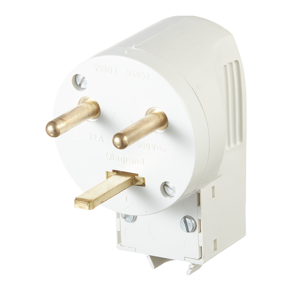 Вилка силовая угловая для электроплит Legrand с заземлением 2Р+Е 32 А 230 В IP20 белая (55802)