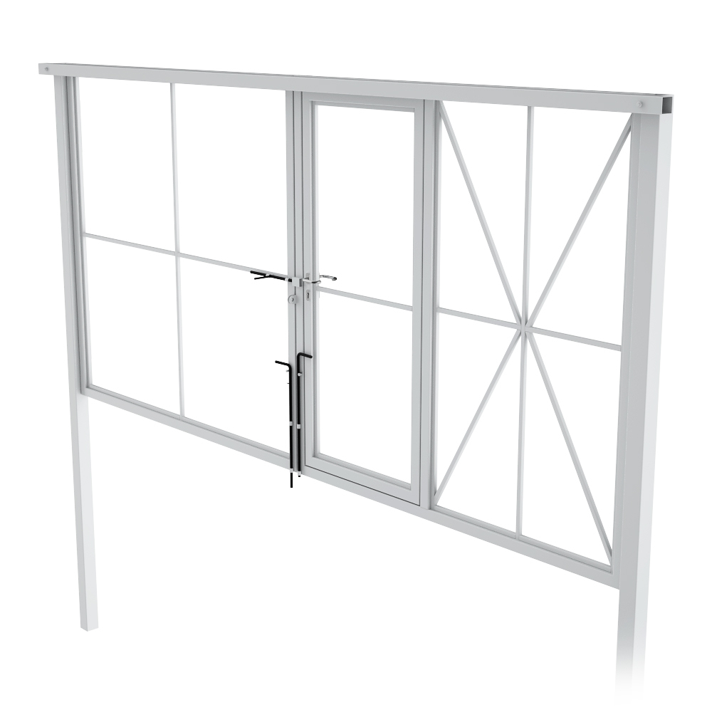 Ворота с калиткой предназначены для оформления входной группы – дома или садового участка. После установки зашивается 3D секцией Гиттер, сеткой рабицей или другим секционным материалом.