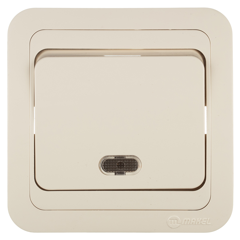Выключатель Makel Mimoza одноклавишный встраиваемый бежевый с подсветкой (25021)