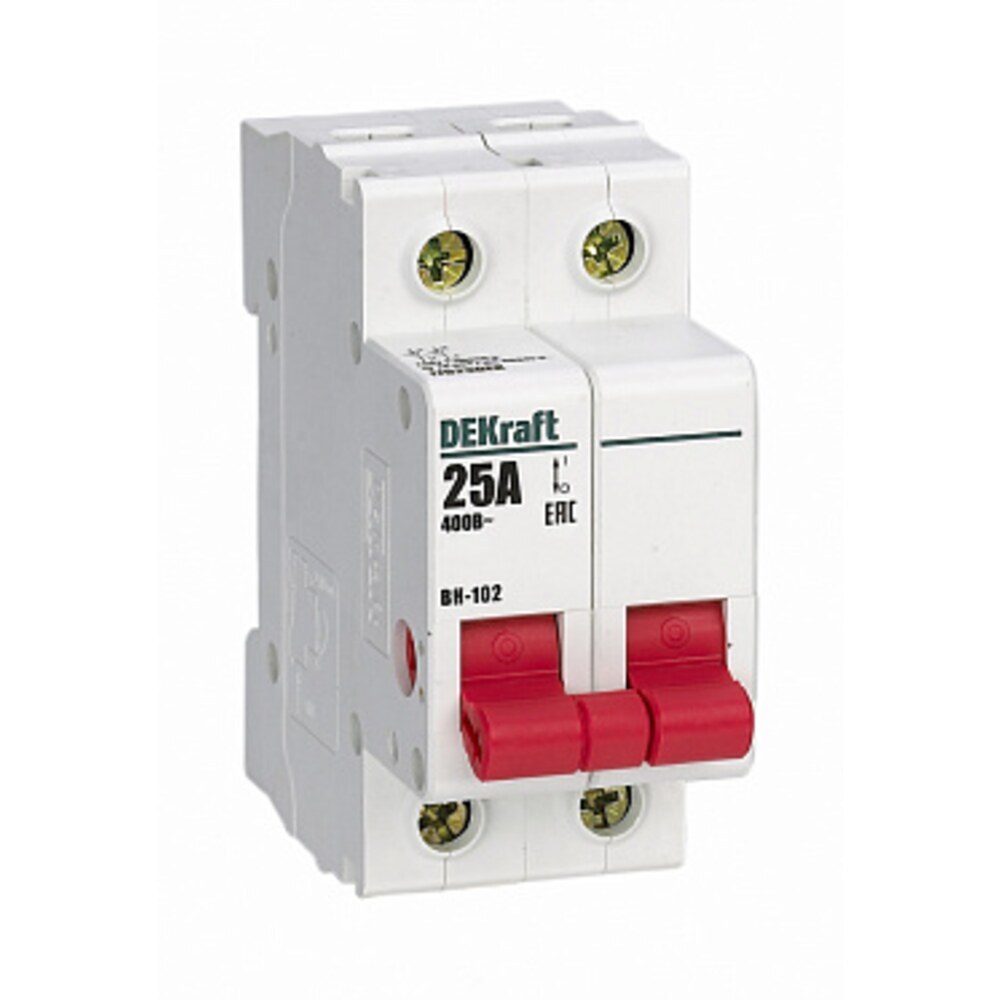 Выключатель-разъединитель Dekraft ВН-102 2P 25А 400 В на DIN-рейку (17023DEK)