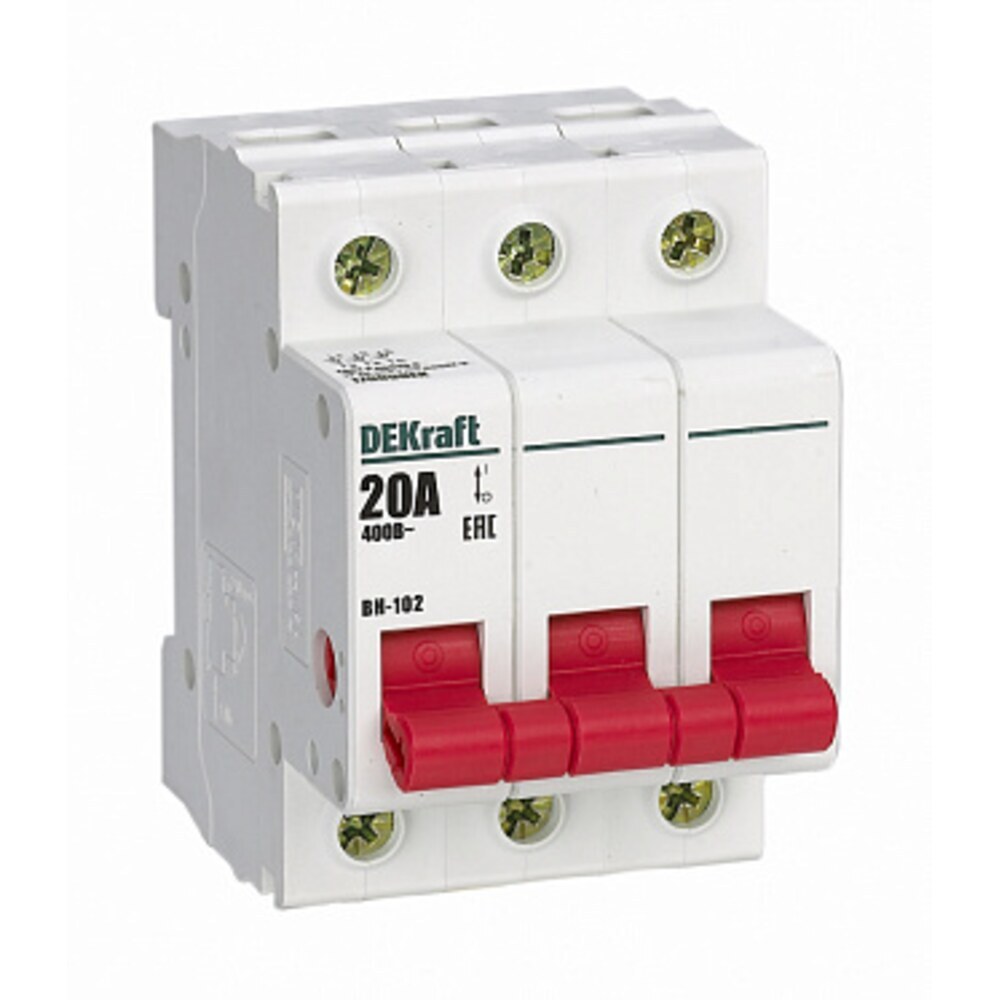 Выключатель-разъединитель Dekraft ВН-102 3P 20А 400 В на DIN-рейку (17009DEK)