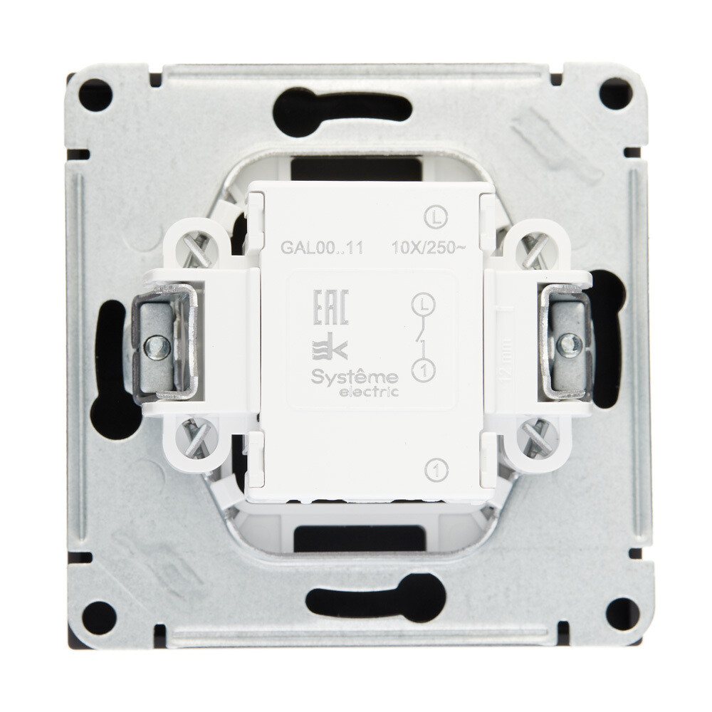 Механизм выключателя 1-клавишного подходит для сетей 250 В, на ток 10 А. Лицевые детали из качественного ABS-пластика, устойчивого к царапинам и УФ-излучению.