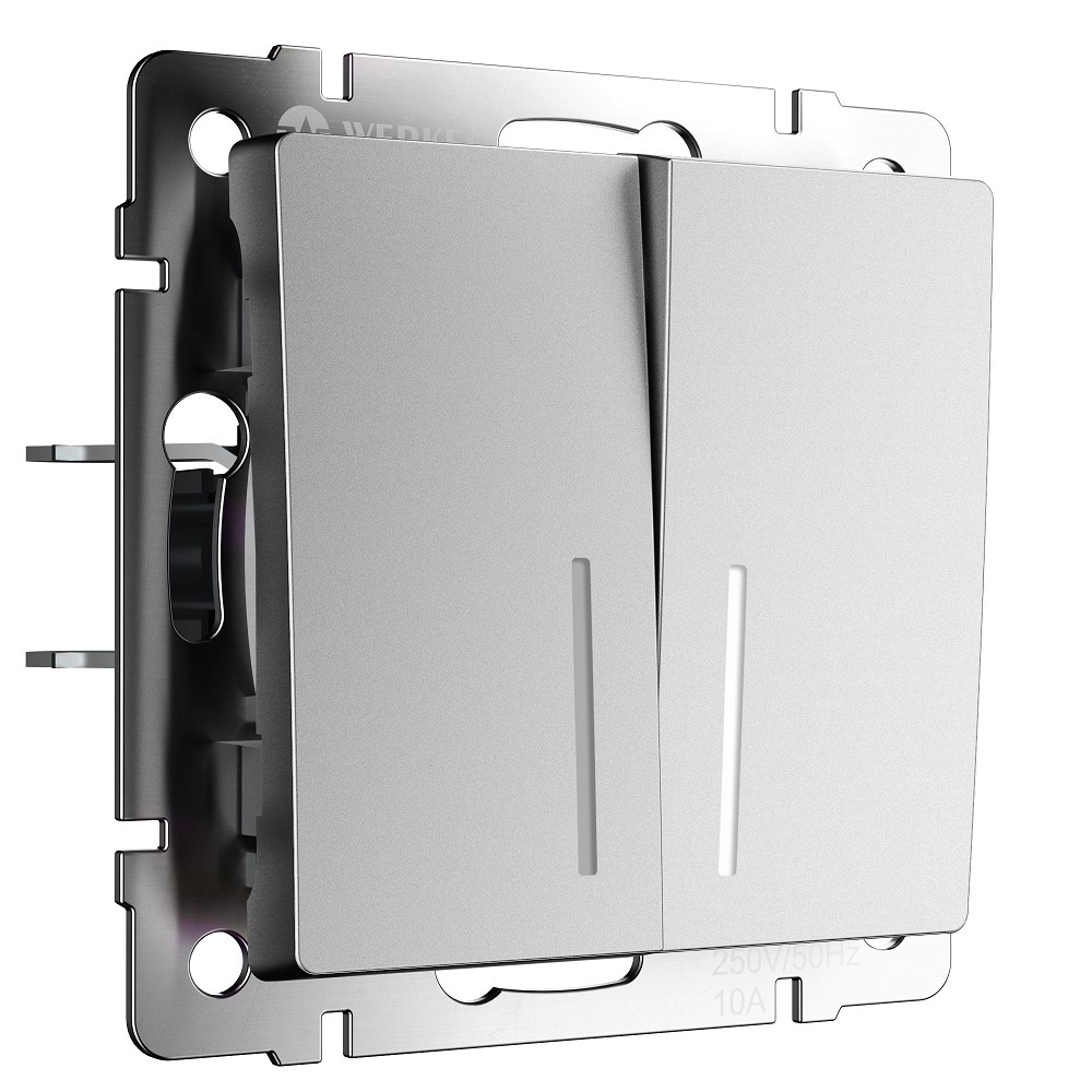 Выключатель Werkel двухклавишный встраиваемый серебряный матовый с подсветкой (a063610)