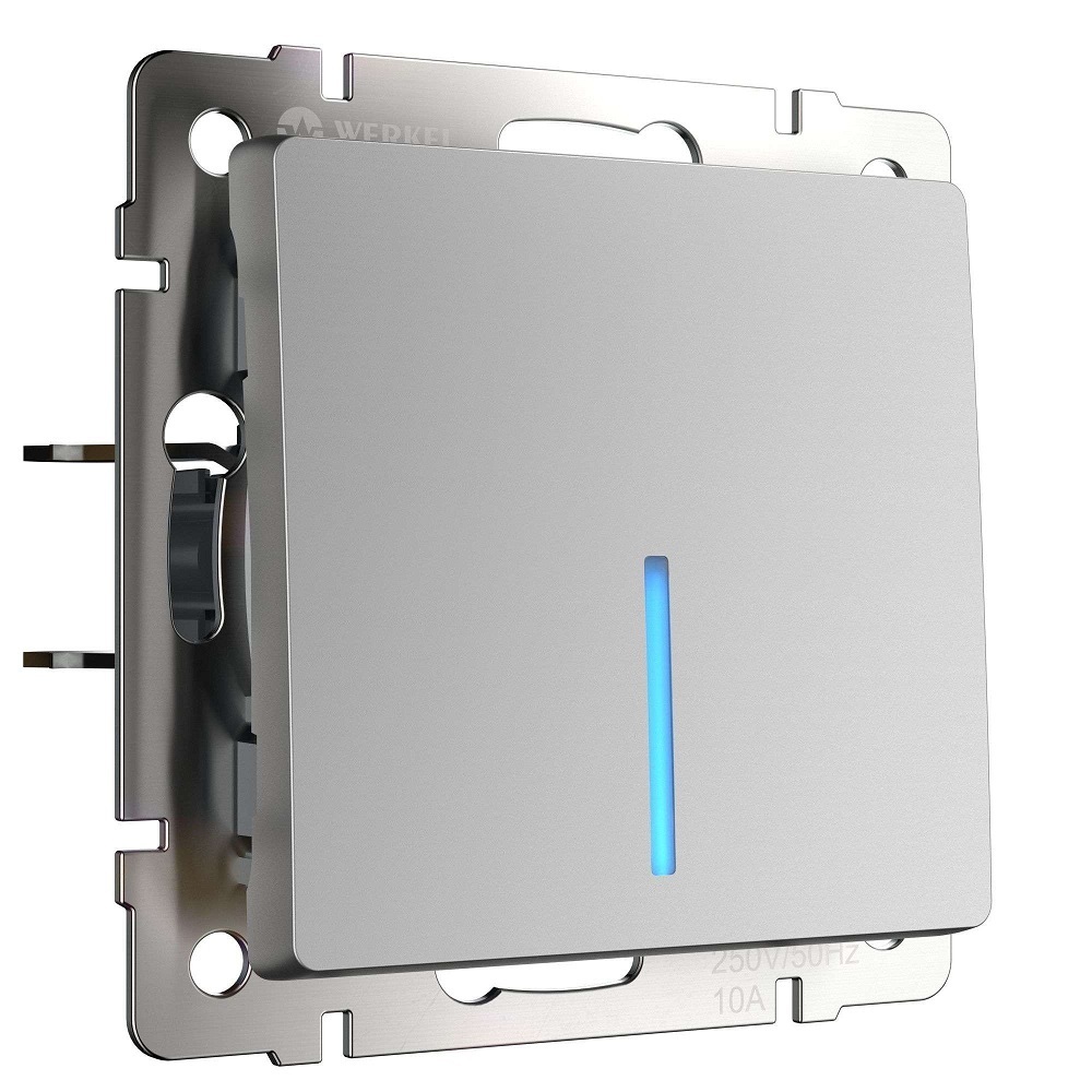 Выключатель одноклавишный проходной с подсветкой серебряный W1112106 совместим со всеми рамками из коллекций Werkel™ это позволяет создавать оригинальные, стилевые и цветовые комбинации.