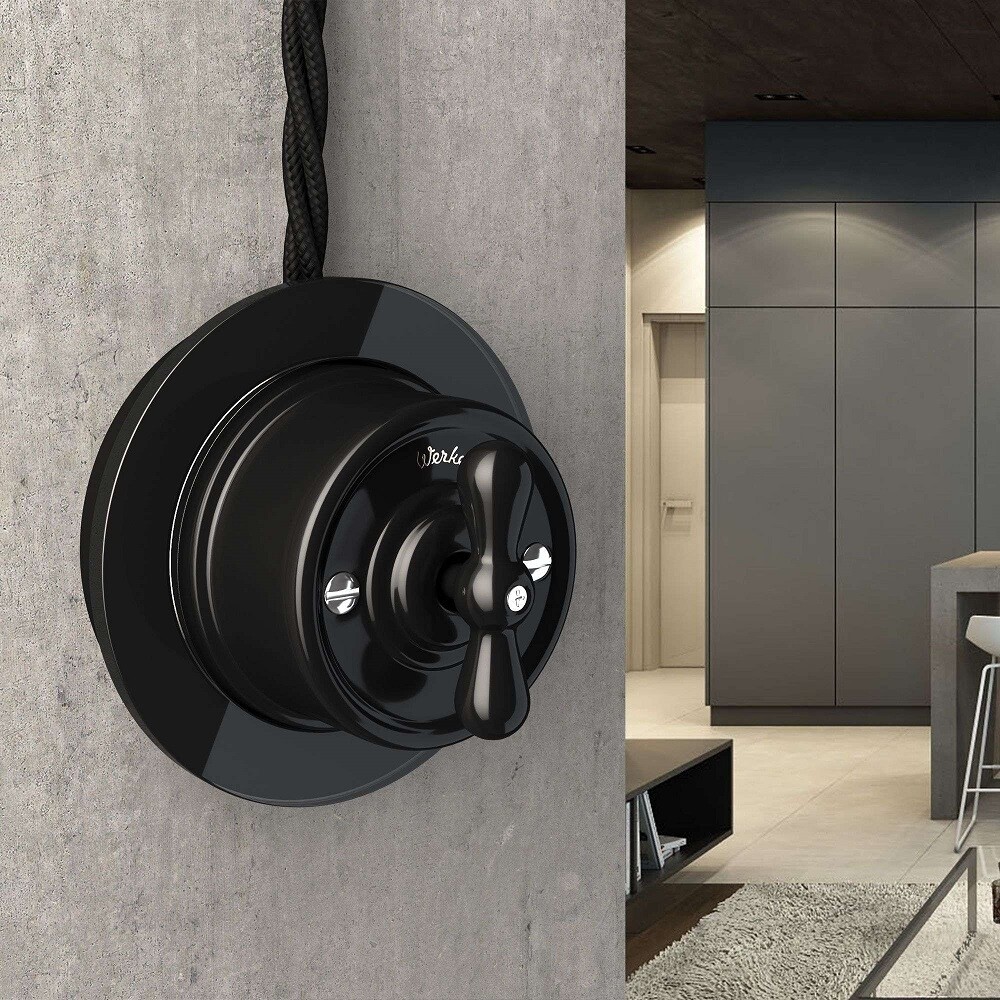 Главная / Каталог / Электрика / Розетки, выключатели / Выключатели / Выключатель Werkel Ретро двухклавишный накладной черный на 4 положения (a051452)