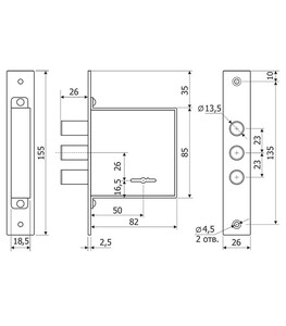 Предназначен для запирания металлических и деревянных дверей, металлических шкафов и сейфов.