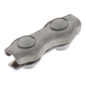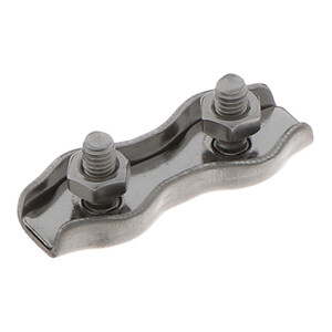 Зажим Duplex для сращивания стальных тросов, канатов размером 3 мм. Также он применяется для создания петель на концах тросов. Двойной зажим Duplex гораздо прочнее при сращивании одинарного Simplex. Независимо от типа, рекомендуется устанавливать не менее двух стальных зажимов.