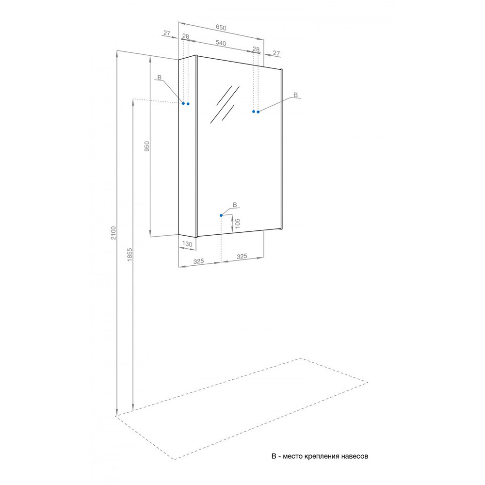 Шкаф – 1 шт., Зеркальный фасад створка – 1 шт., регулируемый навес – 2 шт., створка c зеркалом – 1 шт, петли с доводом (петли с интегриро…
