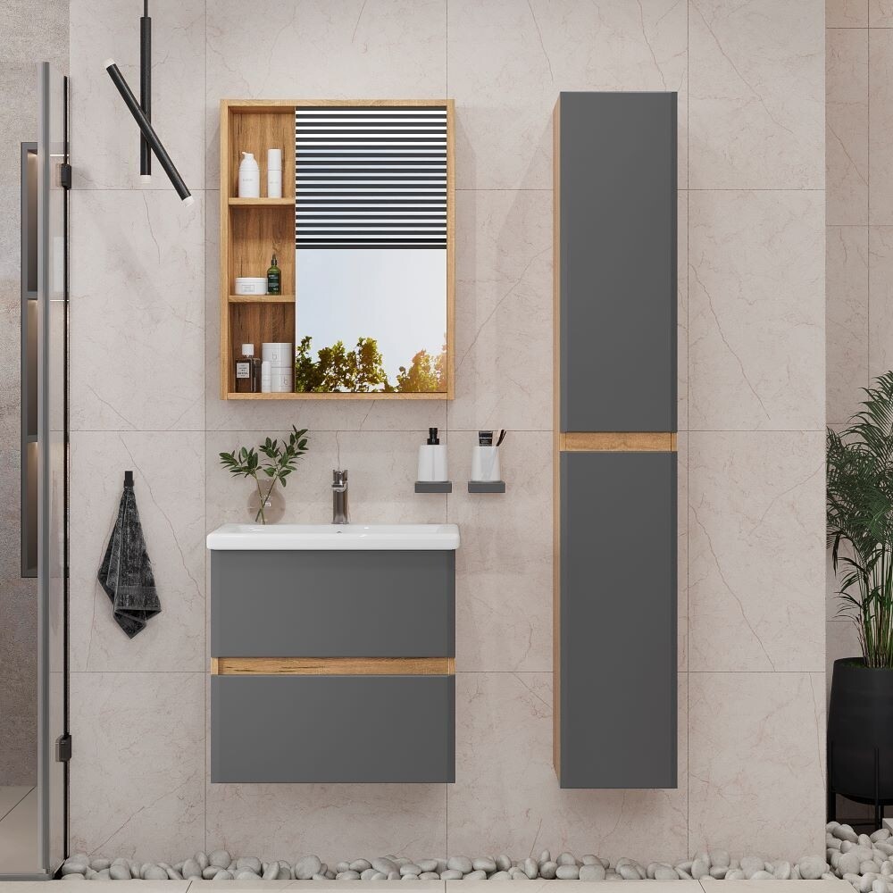 Зеркальный шкаф Sanstar Graffa 60х72,8х14,8 см подвесной дуб вотан