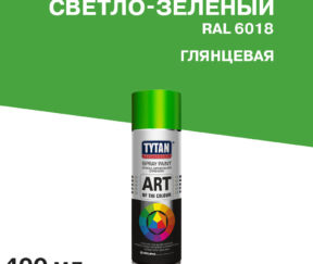 Первоначальная цена составляла 339 ₽.328 ₽Текущая цена: 328 ₽.шт.Краска аэрозольная Tytan Professional Art Of The Colour светло-зеленая глянцевая RAL 6018 400 мл