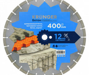 Первоначальная цена составляла 3080 ₽.2990 ₽Текущая цена: 2990 ₽.шт.Диск алмазный по бетону Kronger Beton Blade 400×25,4×3,5 мм сегментный мокрый/сухой рез (B200400)