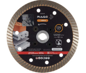Первоначальная цена составляла 2712 ₽.2633 ₽Текущая цена: 2633 ₽.шт.Диск алмазный по бетону Rage by Vira 125х22,2х1,8 мм турбо с фланцем М14 сухой рез (603125)