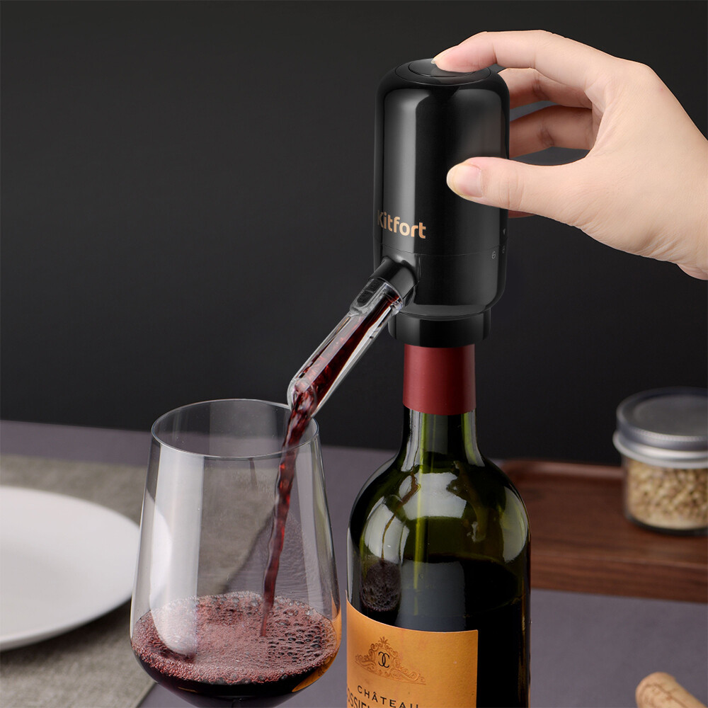 Электрический аэратор для вина КТ-4042 – небольшое устройство, которое поможет легко и удобно налить вино в бокал и насытить напиток кислородом.