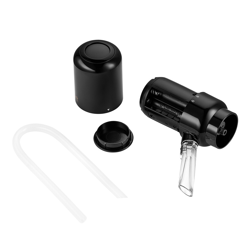 Электрический аэратор, силиконовый шланг, крышка отсека для хранения батареек, нижняя крышка аэратора для хранения.