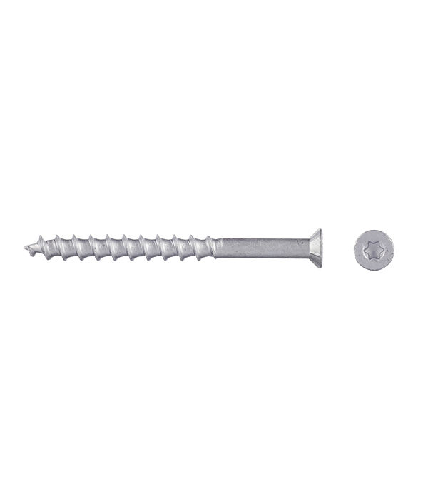 Небольшие выступы на потайной головке облегчают вкручивание в дерево и предотвращают перетягивание. Шуруп имеет нано покрытие, которое позволяет использовать его на улице, в морской и индустриальной среде, а также в других в других условиях, классифицированных по категории коррозионной стойкости C4.