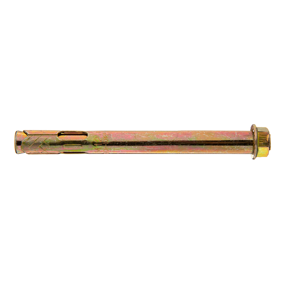 Оцинкованное покрытие обеспечит защиту от коррозии. Анкерный болт с гайкой (втулочный анкер) оснащен фиксирующей гильзой, длина которой равна размерам стального стержня. На хвостовой части шпильки выполнена клинообразная головка. При завинчивании гайки она смещается по резьбовой части. В результате перемещения происходит распирание втулки. Конструктивные особенности такого вида крепежа позволяют использовать его в легких видах бетонов с ячеистой структурой, а также в кирпиче, изготовленном из обожженной глины.