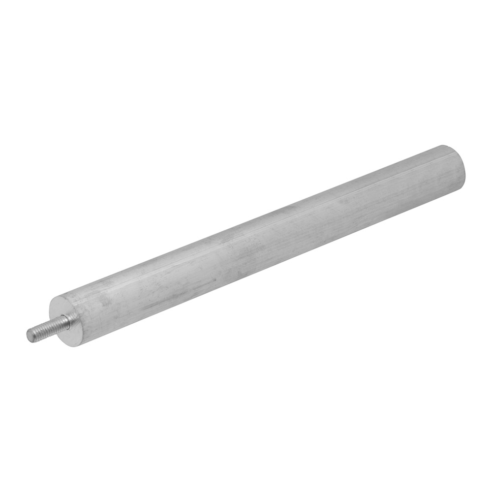 Магниевый анод — это толстый стержень из сплава магния, алюминия и еще нескольких металлов, установленный внутри емкости бойлера. Чаще всего его крепят рядом с нагревательным элементом на одном основании, чтобы в случае обслуживания можно было одним движением извлечь и электрод, и ТЭН. Основное отличие анодов в диаметре шпильки с помощью которой он прикручивается к ТЭНу. На всех ТЭНах поставляемых нашей компанией прописано какой анод к ним подходит.