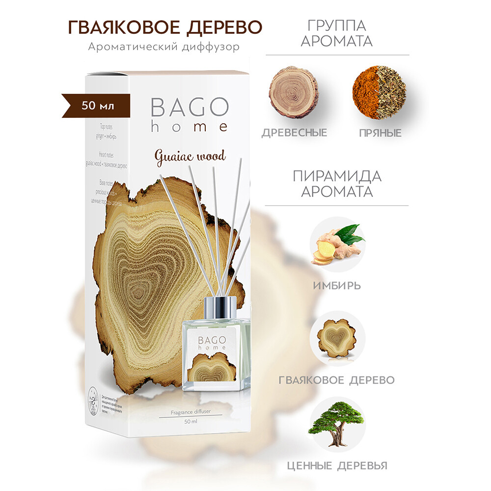 Аромадиффузор с палочками Bago home Гваяковое дерево 50 мл