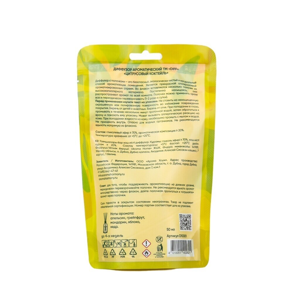 Аромадиффузор с палочками Diff Цитрусовый коктейль 50 мл