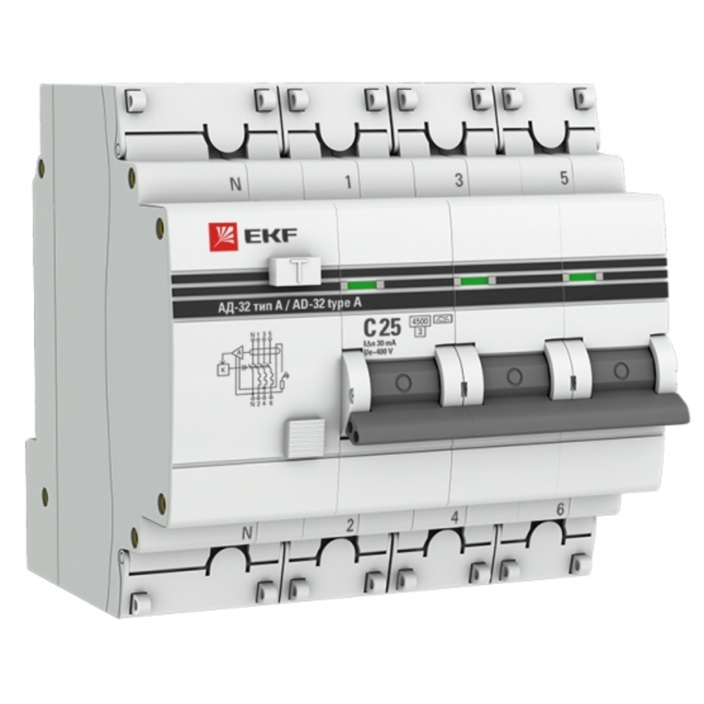 Автомат дифференциальный EKF PROxima АД-32 25А 3P+N тип A 30 мА 4,5 кА (DA32-25-30-4P-a-pro)