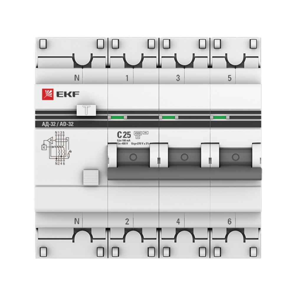 Автомат дифференциальный EKF PROxima АД-32 25А 3P+N тип AC 100 мА 4,5 кА (DA32-25-100-4P-pro)