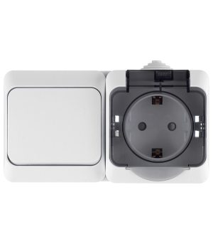 Блок выключатель и розетка Systeme Electric Этюд одноклавишный накладной белый (BPA16-241B)