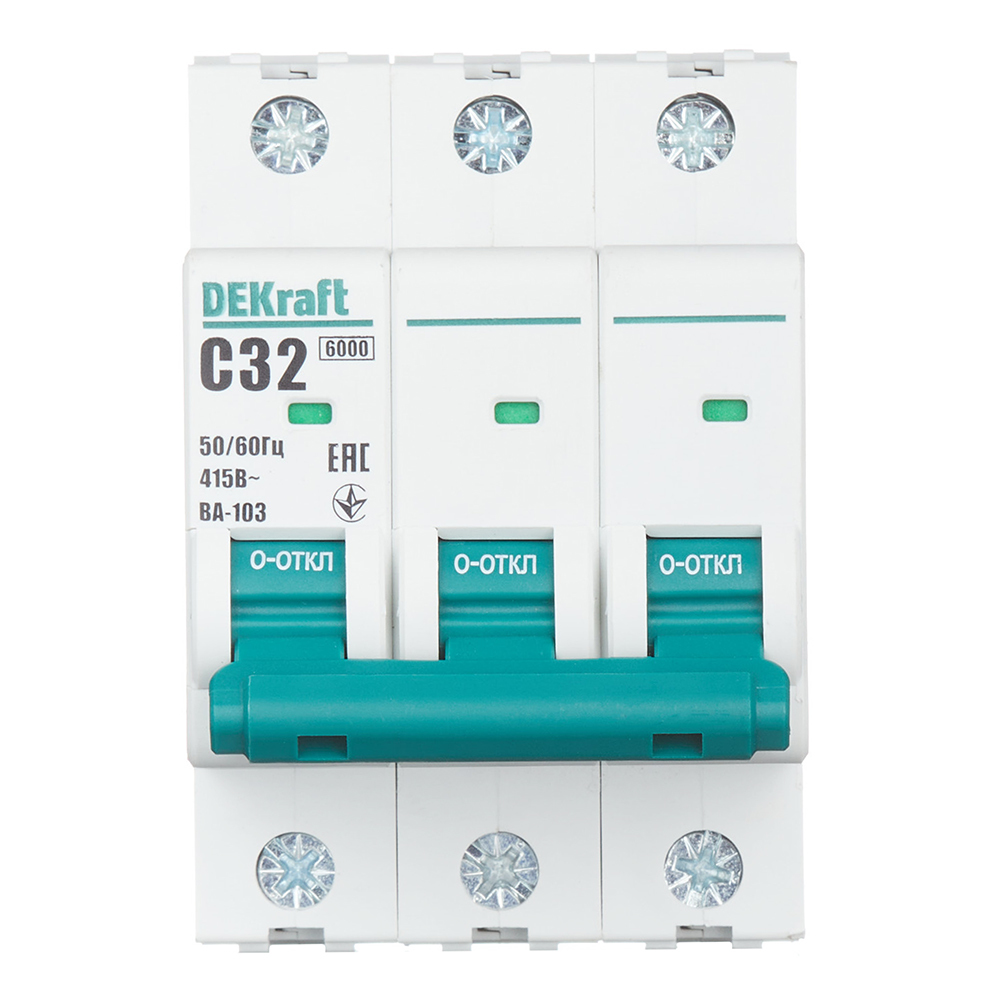 Автоматический выключатель модульный Dekraft BA-103 3P 32А тип C 6 кА 230/400 В (12308DEK)