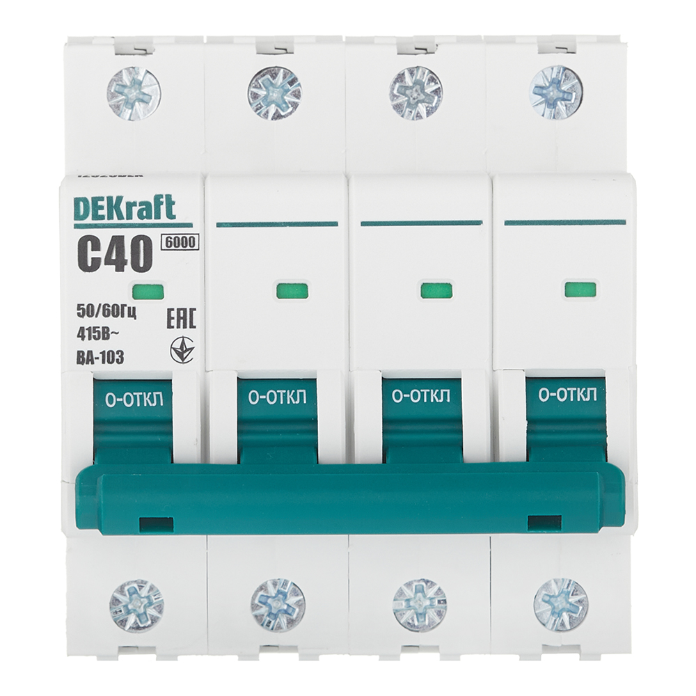 Автоматический выключатель модульный Dekraft BA-103 4Р 40А тип C 6 кА 230/400 В (12325DEK)