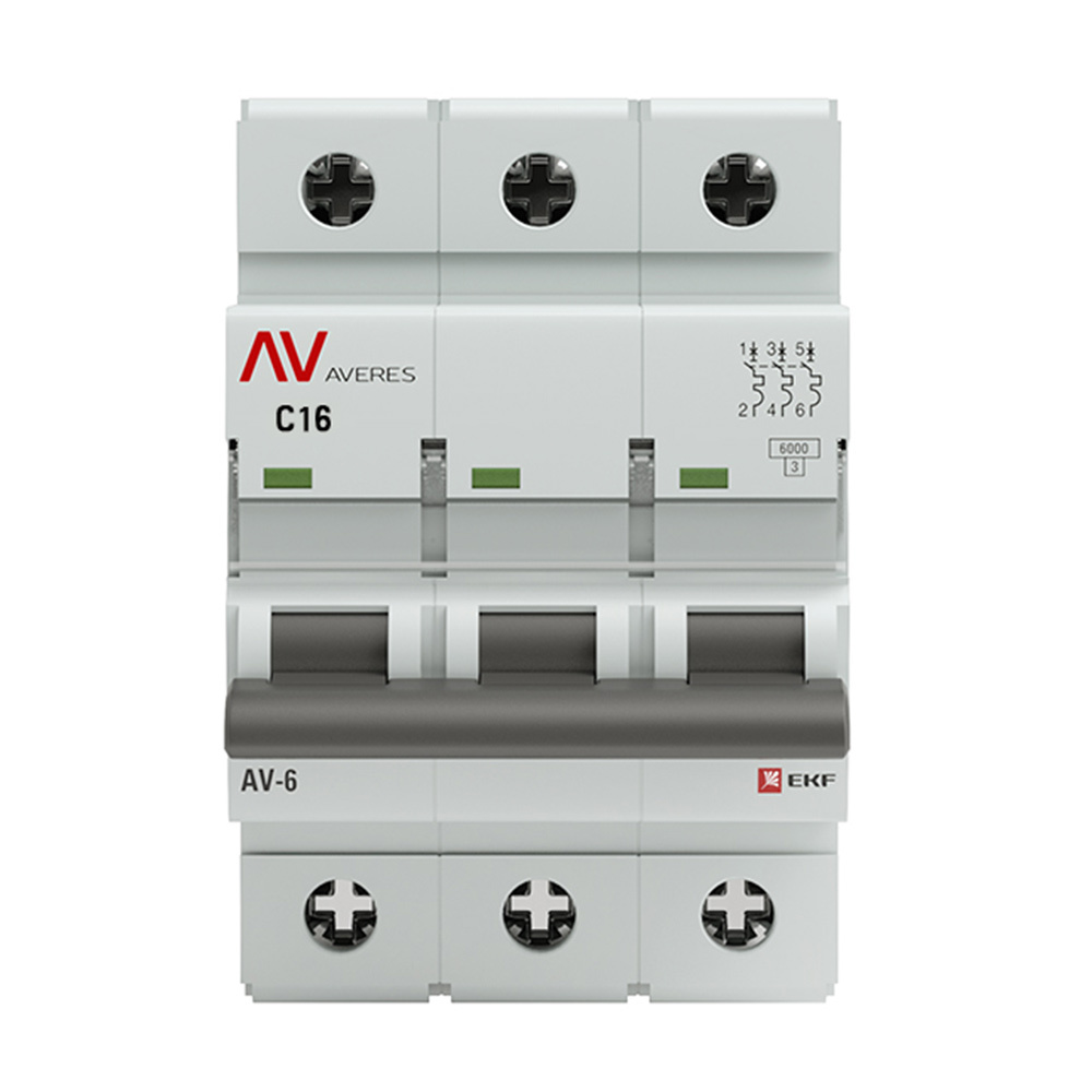 Автоматический выключатель модульный EKF Averes AV-6 3Р 16А тип C 6 кА 400 В (mcb6-3-16C-av)