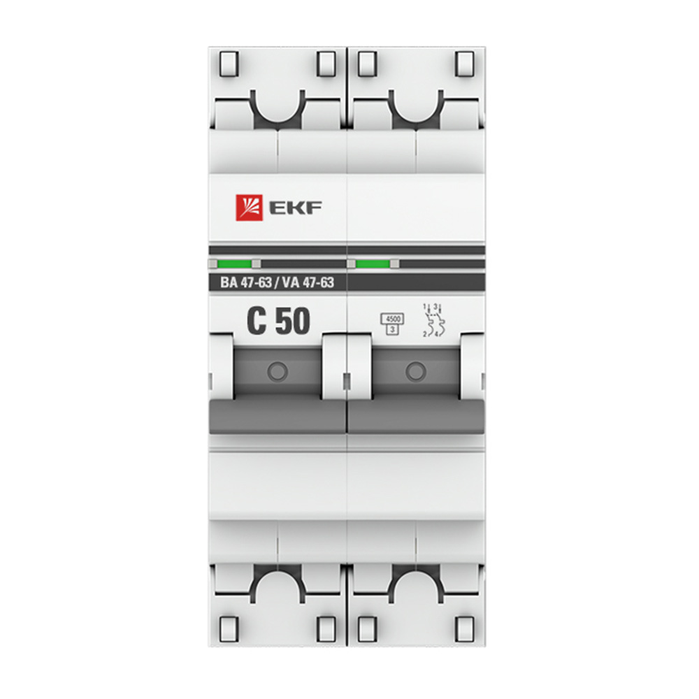 Автоматический выключатель модульный EKF PROxima ВА 47-63 2Р 50А тип C 4,5 кА 230 В (mcb4763-2-50C-pro)