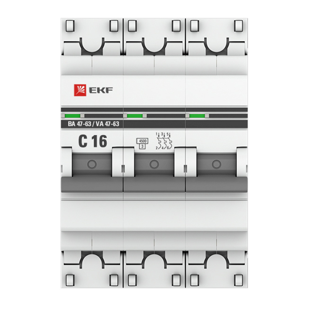 Автоматический выключатель модульный EKF PROxima ВА 47-63 3Р 16А тип C 4,5 кА 400 В (mcb4763-3-16C-pro)