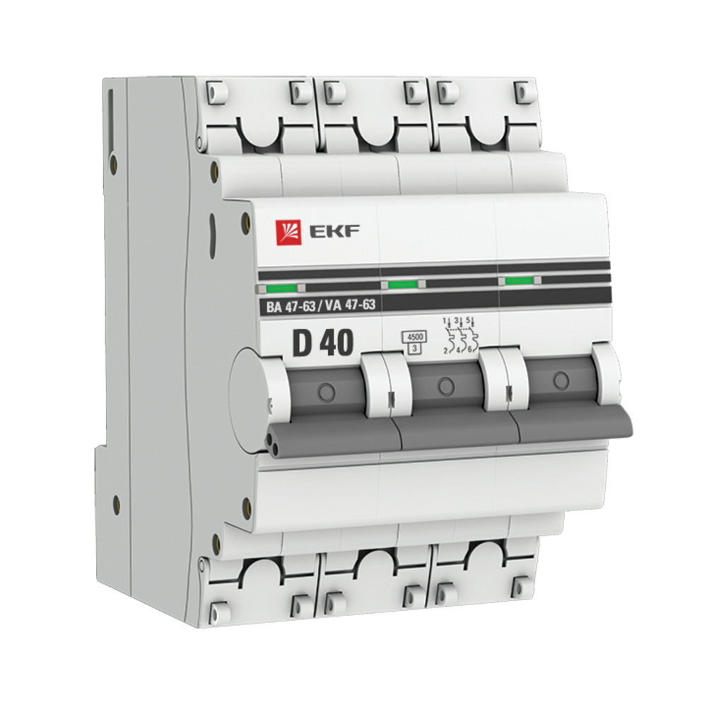 Автоматический выключатель модульный EKF PROxima ВА 47-63 3Р 40А тип D 4,5 кА 400 В (mcb4763-3-40D-pro)