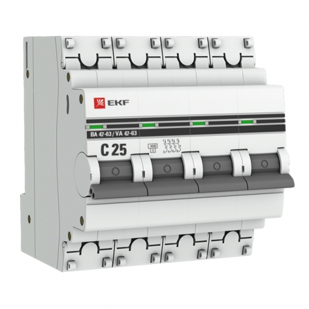 Автоматический выключатель модульный EKF PROxima ВА 47-63 4Р 25А тип C 4,5 кА 400 В (mcb4763-4-25C-pro)