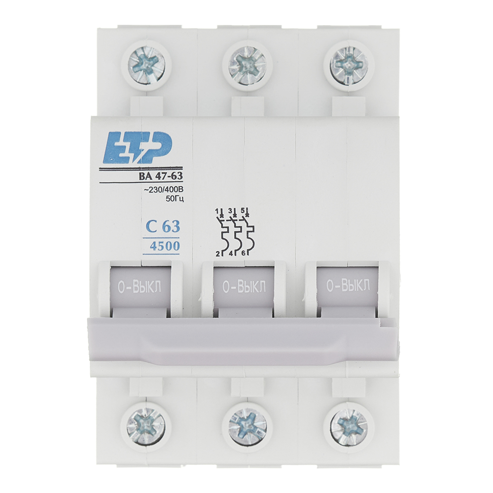 Автоматический выключатель модульный ETP ВА 47-63 3P 63А тип C 4,5 кА 400 В (11329)