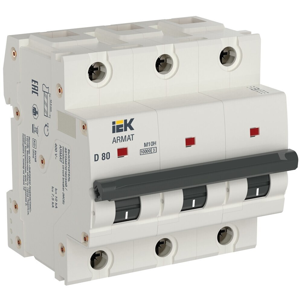 Автоматический выключатель модульный IEK Armat M10H 3P 80А тип D 10 кА 400 В (AR-M10H-3-D080)