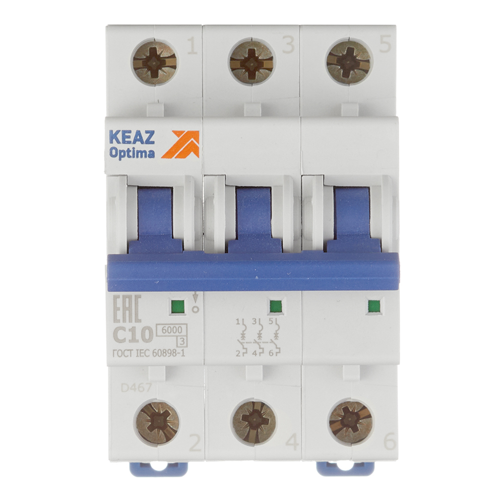 Автоматический выключатель модульный КЭАЗ OptiDin 3P 10А тип C 6 кА 380 В (260789)