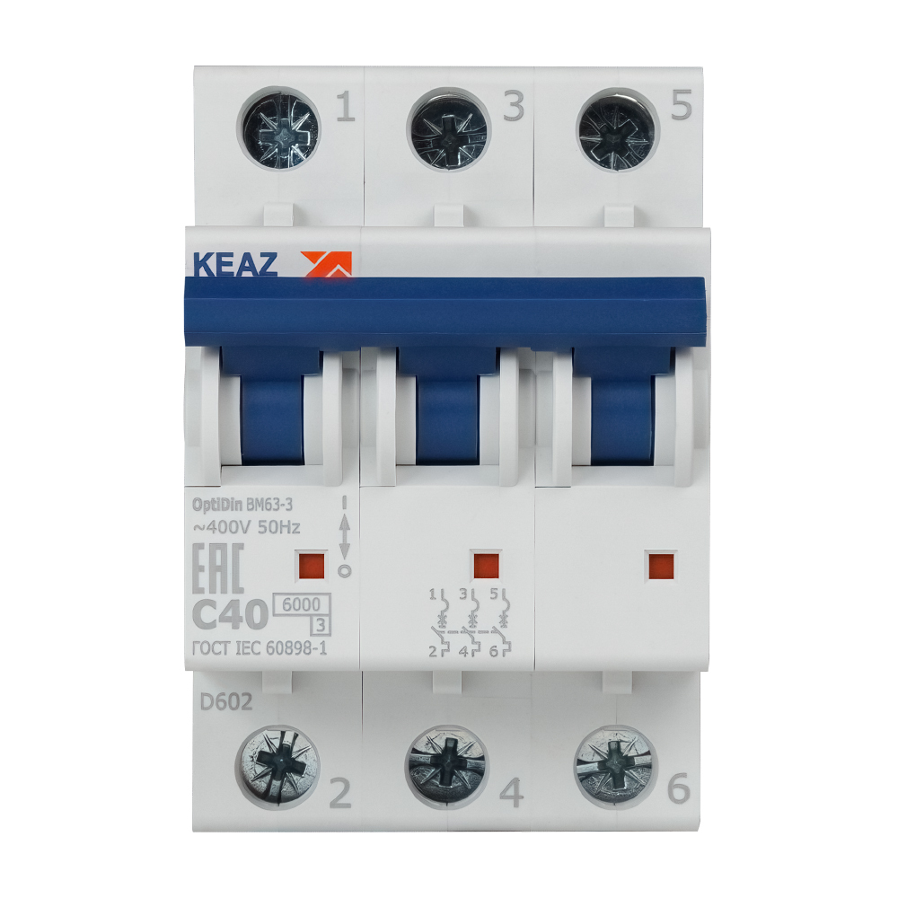 Автоматический выключатель модульный КЭАЗ OptiDin 3P 40А тип C 6 кА 380 В (260798)